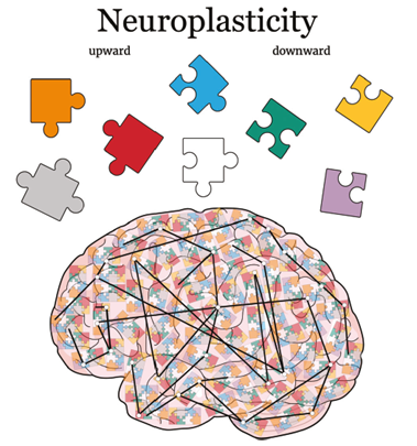 Neuroplasticity should be conceptually understood as a balance between upward and downward connections in the brain (Diniz & Crestani, 2022). Density levels and structural complicity of brain components (dendrites and spines) should be considered part of a neuroplasticity program rather than a deficiency. Thus, comparable to how a puzzle fits together, upward, and downward neuroplasticity complement each other so the brain can effectively reshape connections to optimize the network’s efficiency as shown in Figure 1.